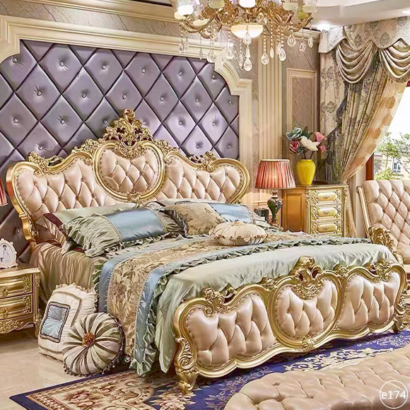 Product style::European style solid wood leather bed