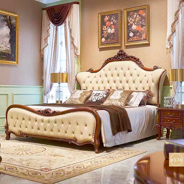 Product style::European style solid wood leather bed