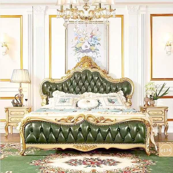 Product style::European style solid wood leather bed