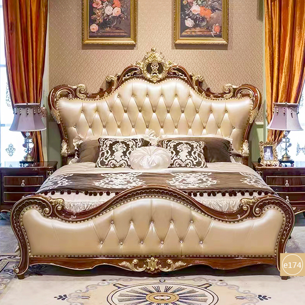 Product style::European style solid wood leather bed